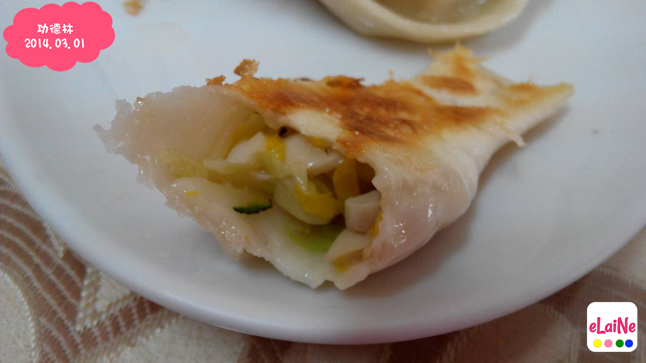 70元五個鍋貼,一家人用剛好一人一個,看到這可愛白皙的外表,還有煎的香酥那一面,外表就100分了。(我好容易滿足喔)
